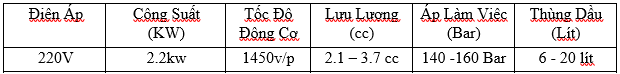 - Lưu lượng bơm từ 2.1cc - 4.0 cc