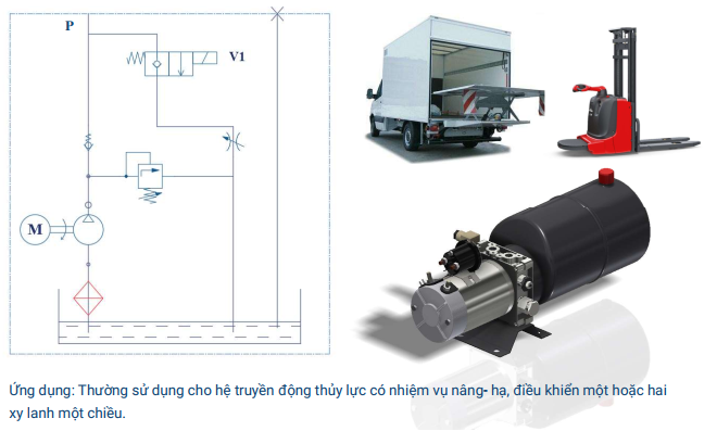 Bộ nguồn thủy lực mini 24V DC chuyên dùng cho các loại xe chuyên dụng, xe bửng nâng, xe tải nâng, bàn nâng, xe cách dơi, xe ben và các ứng dụng nâng hạ khác ... Thường được sử dụng cho các loại xylanh 1 chiều và hồi về bằng tải trọng.