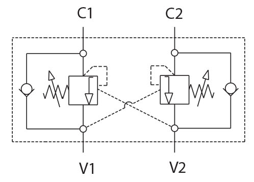 Sơ đồ nguyên lý hoạt động của van cân bằng kép:
