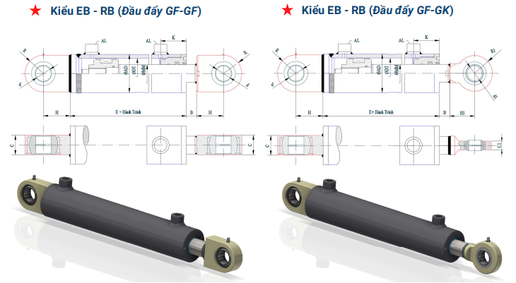 Xy lanh thủy lực kiểu lắp khớp cầu EB - RB