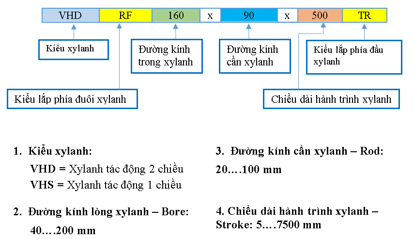 Bảng thông số cơ bản của xi lanh Thủy lực Việt Hà