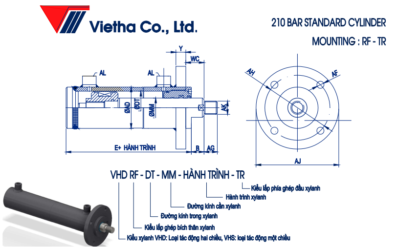Xi lanh thủy lực Việt Hà là xi lanh duy nhất ở Việt Nam đạt tiêu chuẩn cho ngành tàu biển. Xi lanh thủy lực RF-TR kiểu lắp mặt bích phía trước có ưu điểm là linh động nên có thể dùng trong các hệ thống như máy lái, bàn nâng, bửng nâng, sàn nâng.